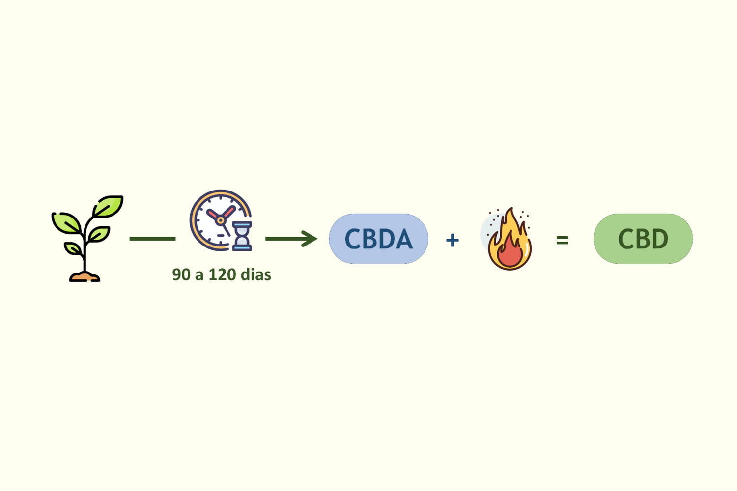Quando sujeito a calor controlado (processo de descarboxilação), o CBDA transforma-se em CBD (Canabidiol), um canabinoide não psicoativo com elevado e crescente interesse científico.